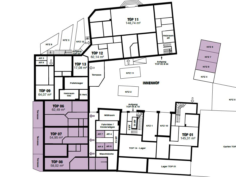 Jeder Wohnung ist ein eigener KFZ-Stellplatz direkt am Grundstück zugeordnet.